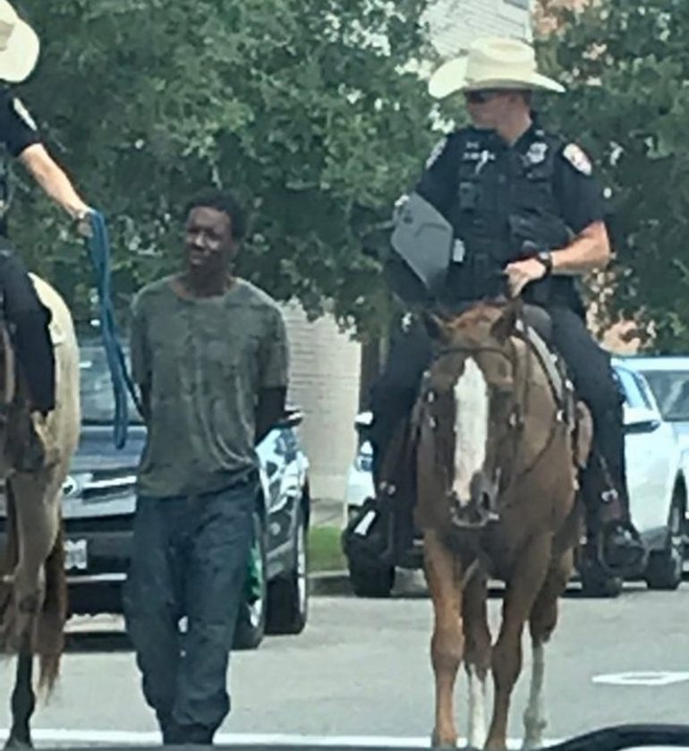 USA : des policiers à cheval menottent un noir qui les ...